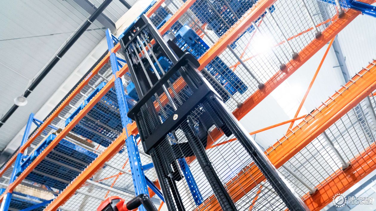 - Rijden en heffen gebeurt volledig elektrisch. Perfect voor snel en efficiënt stapelen van pallets.