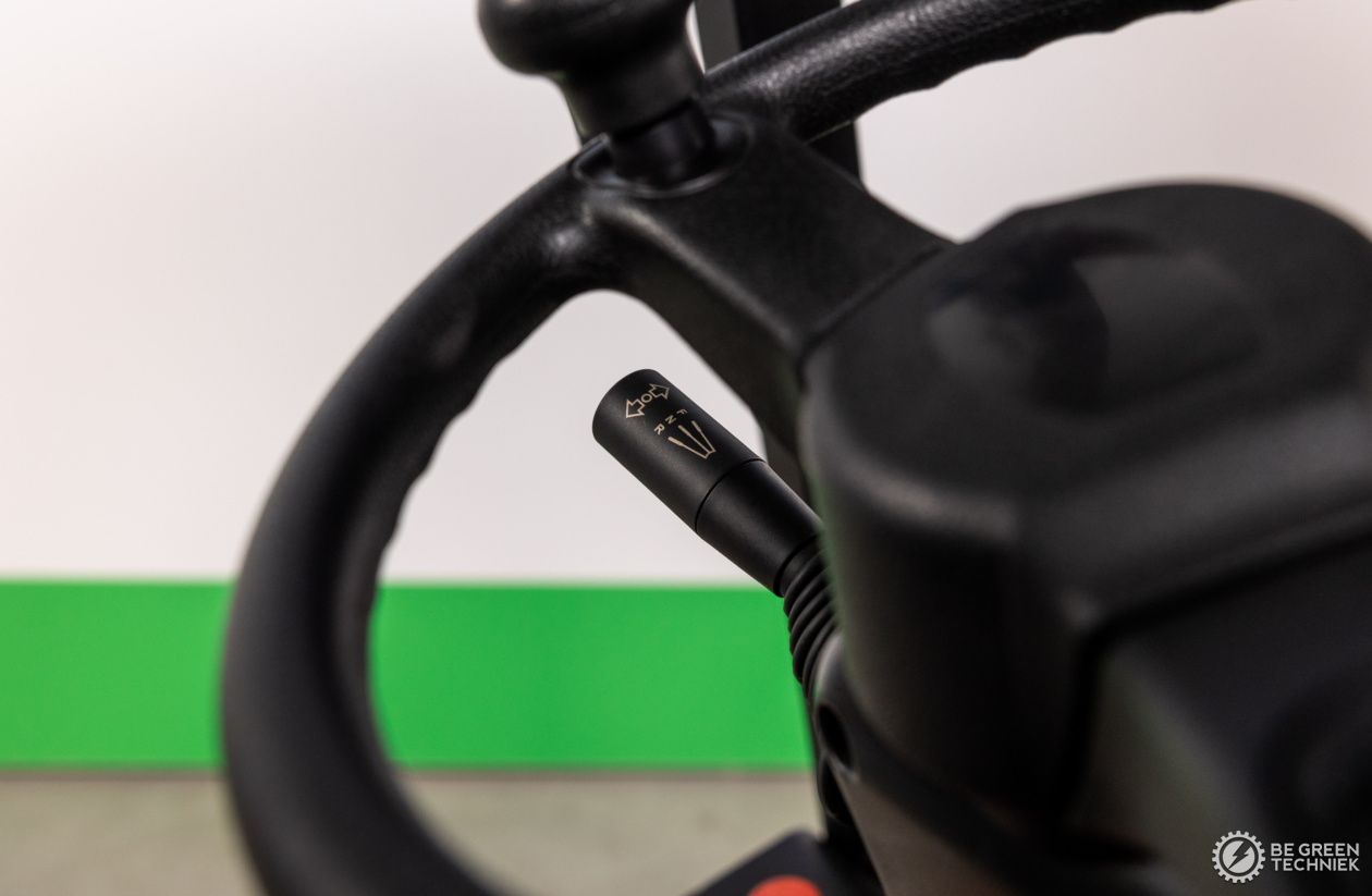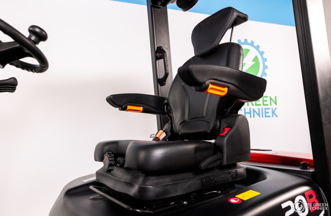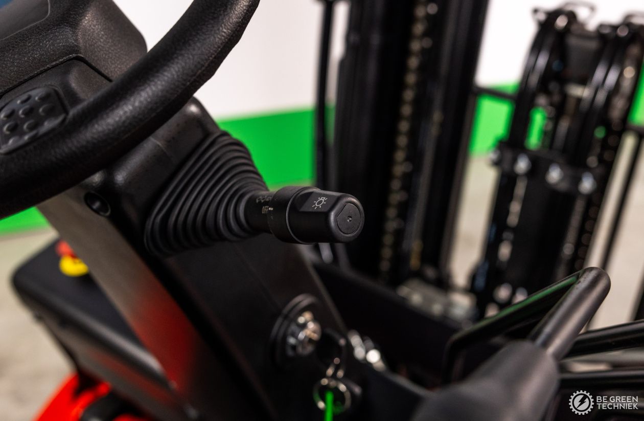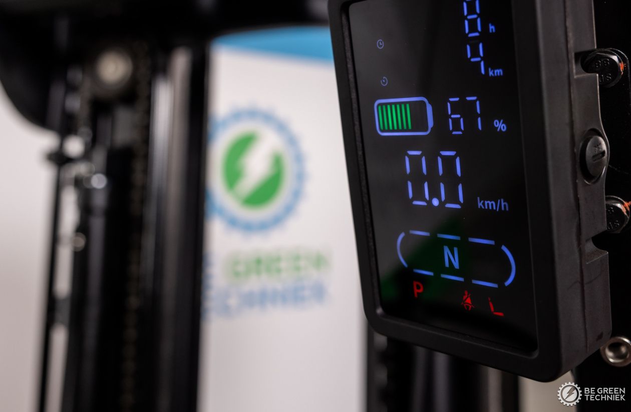 Compact en gebruiksvriendelijk: Het gestroomlijnde contragewicht en de nieuwe mast zorgen voor een compact ontwerp dat perfect past in krappe ruimtes. De LED-display geeft in één oogopslag informatie over snelheid, batterijstatus en meer, zodat de bestuurder altijd goed geïnformeerd is.