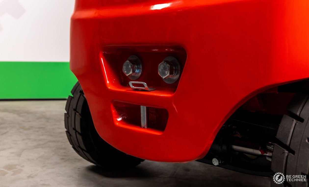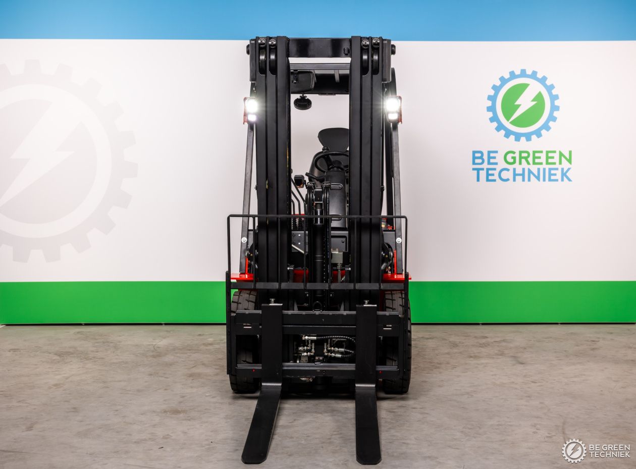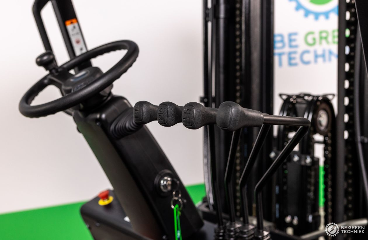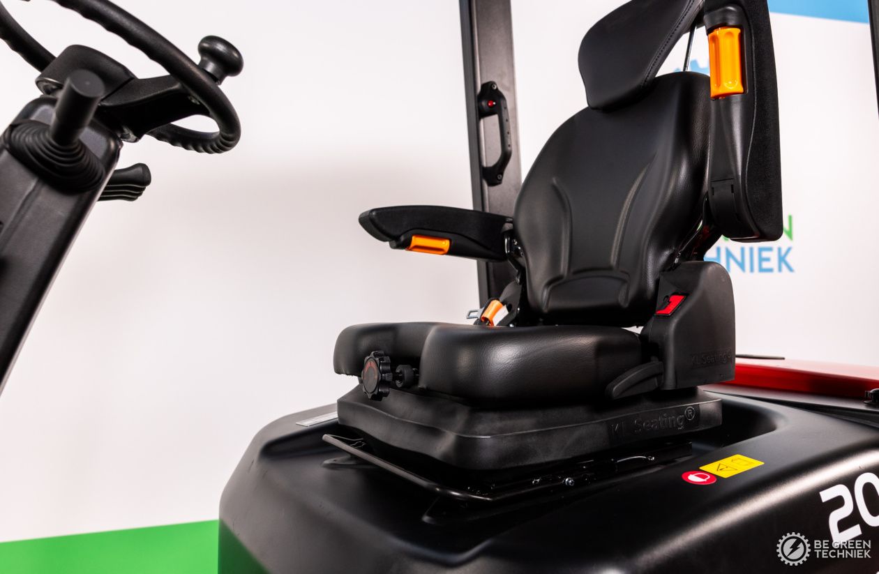 Compact en gebruiksvriendelijk: Het gestroomlijnde contragewicht en de nieuwe mast zorgen voor een compact ontwerp dat perfect past in krappe ruimtes. De LED-display geeft in één oogopslag informatie over snelheid, batterijstatus en meer, zodat de bestuurder altijd goed geïnformeerd is.