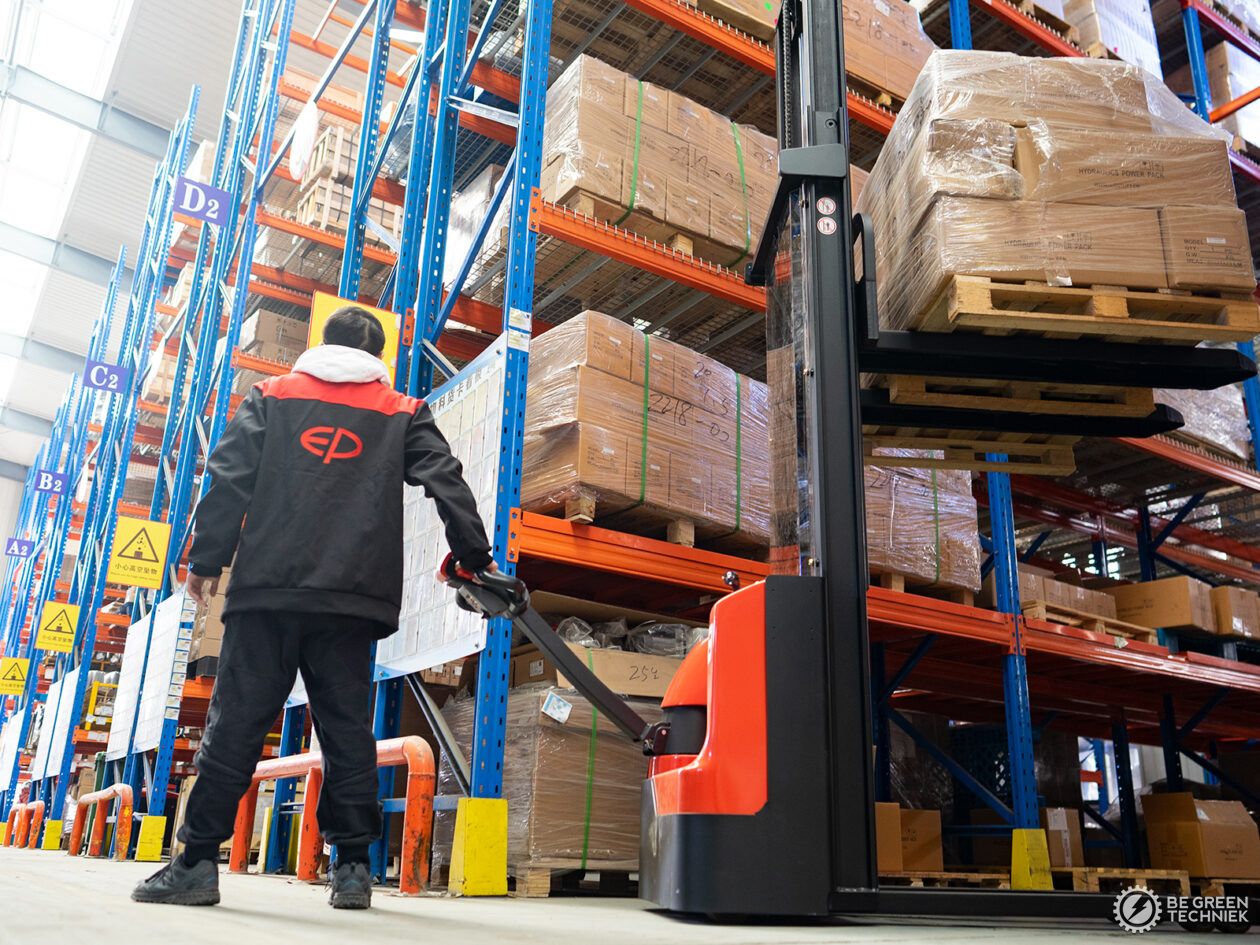 Rijden en heffen doet deze EP ES15-15ES volledig elektrisch, met een gewicht van maximaal 1.500 kg en een hoogte van maximaal 4,15 meter.