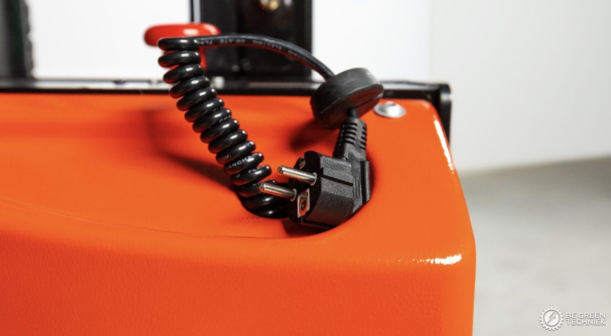 We leveren de stapelaar met een gel-batterij en een geïntegreerde lader. Een vrijwel lege accu is in ongeveer 8 uur weer volledig op te laden.