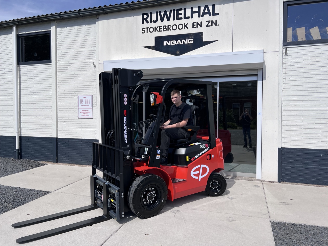 Rijwielhandel Stokebrook is overgestapt op een volledige elektrische heftruck, komend vanaf een LPG machine nu de stap gemaakt naar stil werken en dankzij de onderhoudsvrije lithium LFP accu geen gedoe met gasflessen meer. De EFL203 is compact, sterk en heeft een hoge bodemvrijheid om ook de helling omhoog te klimmen naar de weg en door een afvoergoot heen te rijden. Dankzij de 4800 mm triplex mast, geveerde stoel en comfortabele bediening worden nieuwe fietsen makkelijk gelost en kunnen de opslag rekken op de zolder worden gezet met de heftruck.